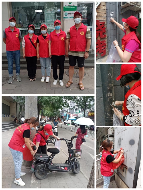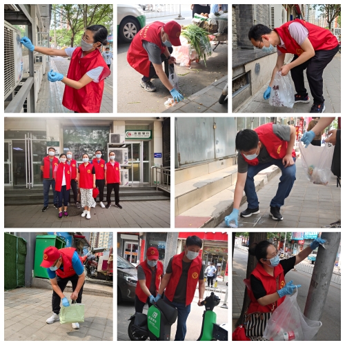 6月21日下午,公共教学教辅党委杜少杰、尹长江、宋勇跃、杨建辉、高雅佳在双柳街志愿服务