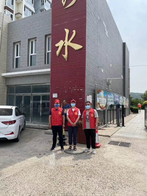 6月20日下午,公共教学教辅党委吴新晖、张燕霞、徐姗姗、陈娜在秀水花园小区开展志愿服务