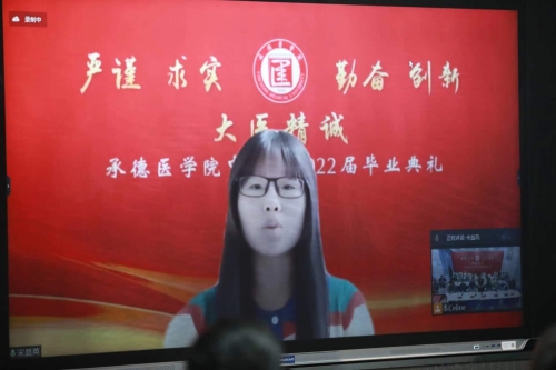 2022年6月24日下午,中医系2022届毕业典礼在教学楼智慧教室举行。典礼以线上线下相结合的方式举行,通过网络平台面向全体学生播放。中医系党委书记李晓杰、主任吴杰、副主任郭建恩、党委副书记李庆林及全体教职工出席。毕业典礼由郭建恩主持,中医系2022届全体毕业生和在校生代表参加典礼。 典礼开始前,播放精心设计制作的毕业视频,视频内容主要是学生在校学习生活片段,一段段别开生面的视频画面,把同学们带回到同窗朝夕相处的校园生活中,回顾珍惜的经典瞬间,激发了学生们对母校的深厚情谊。 (点击每张图片即可查看原图)
