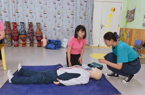 志愿者为幼师讲解指导正确操作 此次志愿活动,幼师们学习了基础生命支持、海姆立克急救术等相关急救知识,提高了面对意外事故发生时的应急能力。该志愿服务队在彭丹梅老师的带领下将继续做好医学知识教育、急救知识普及工作,以实际行动营造“人人学急救,急救为人人”的良好社会氛围,助力“健康中国”建设。