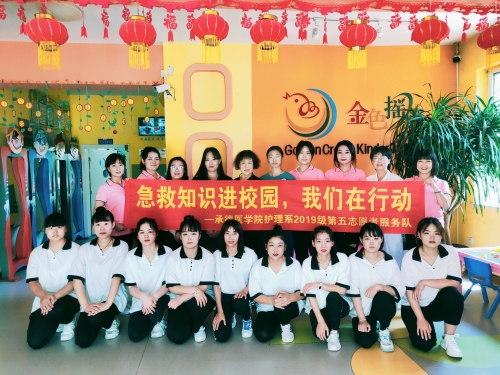 为普及“应急救护”知识技能,守护人民健康,护理系2019级护理学第五青年志愿服务队在护理系实验中心主任彭丹梅的带领下于2022年6月25日在承德市承德县金色摇篮幼儿园开展以“急救知识进校园,我们在行动”为主题的志愿服务活动。 (点击每张图片即可查看原图)