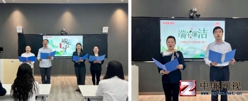 “最是人间好时节”端午节诗歌朗诵和书画作品比赛 诗歌朗诵采用线上线下相结合形式。5月31日晚20:00,诗朗诵比赛于教学楼线下正式开始,活动面向全体在校师生,师生们现场声情并茂、绘声绘色的朗诵感染着在场的每一个人。此次诗朗诵比赛为师生提供了一个展现自我的平台,充分表达了对诗歌的热爱,以及对端午佳节的美好祝愿。