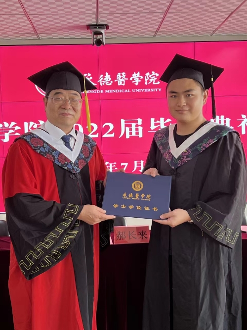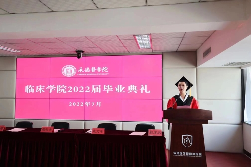2022年7月17日上午9点,临床学院2022届毕业典礼暨学位授予仪式在承德医学院附属医院行政楼4楼学术报告厅和线上直播间同步举行。承德医学院党委常委、副校长郝长来出席毕业典礼,党委宣传部、学生处、附属医院教育处以及临床学院辅导员教师、临床学院2022届全体毕业生和部分在校生代表参加典礼,典礼由临床学院党委副书记张宇丽主持。 毕业典礼在雄壮的国歌声中拉开帷幕,毕业生收看唐世英校长毕业寄语视频,学生处张文军处长宣读临床学院2022届省优秀毕业生、校优秀毕业生名单;临床学院党委书记王瑞婷宣读关于准予临床学院2022届毕业生毕业的决定;临床学院院长、学位分委员会主席赵连志宣读关于授予临床学院2022届毕业生学士学位的决定;之后,各位领导为学生代表颁发毕业证书和学位证书。 (点击每张图片即可查看原图)