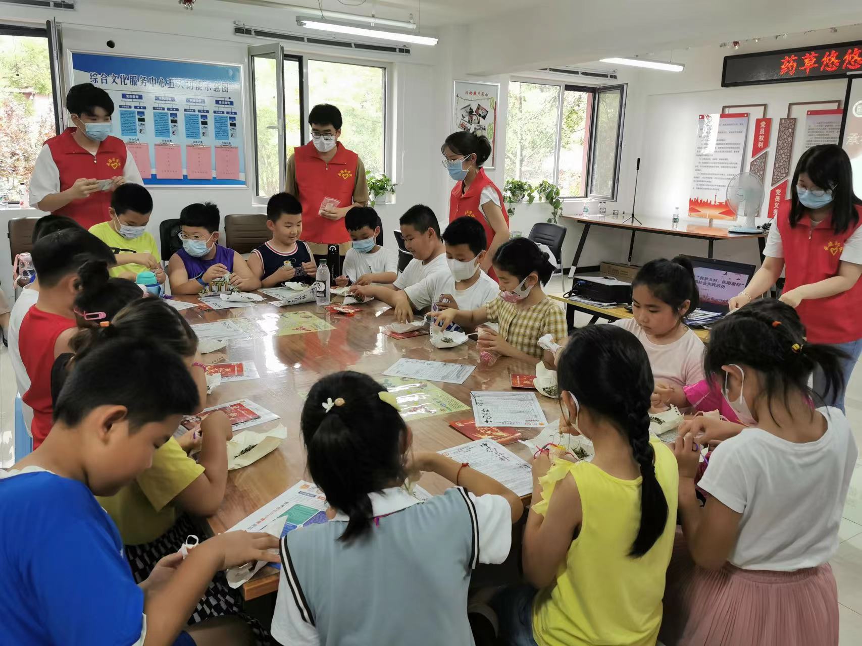 实践队员于河北省保定市博野县程委镇解村村民家中进行调研 “杏林暖人心,医路健康行”爱心医疗活动 实践团成员于7月13日前往秦皇岛市海港区燕山大街街道达润御园社区开展“杏林暖人心,医路健康行”爱心医疗活动。在社区活动室里,实践团成员准备好药材和香囊,耐心告诉孩子们各种药材的名称和作用。小朋友们在队员帮助下自己做出了防疫香囊,并在这场防疫香囊DIY活动中接触和了解到祖国的中医药文化。