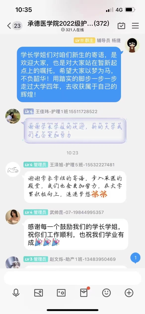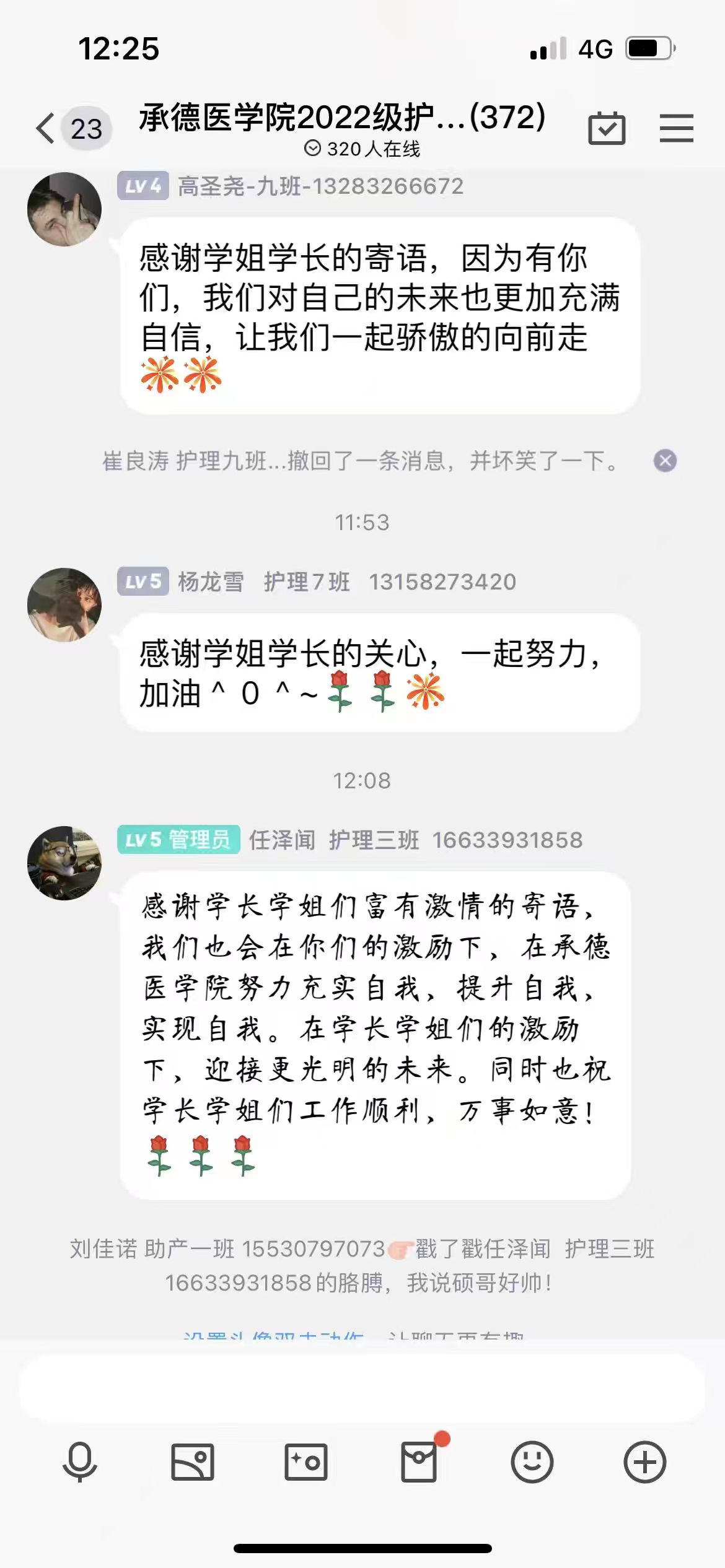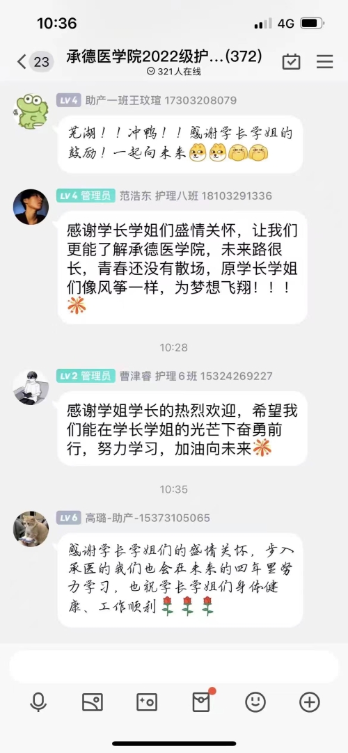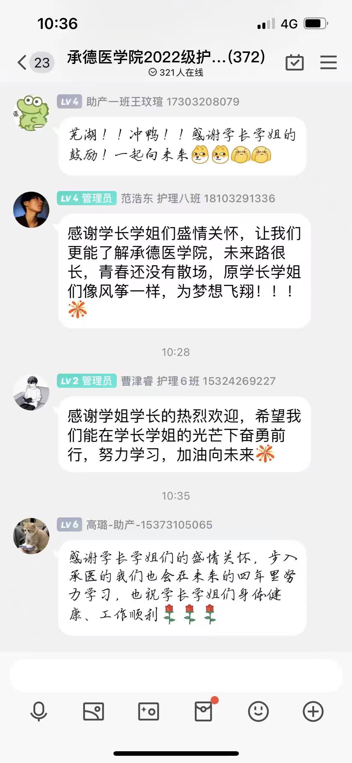 这份特殊的礼物让2022级护理系新生倍感惊喜,同时也增加了新生对护理专业和助产专业的认同感、从业的荣誉感和使命感。新生们非常激动,纷纷在群里发言,感谢学长学姐们的关怀和鼓励,相信自己在学校四年培养下,在学姐学长的引领下定能砥砺奋进,勇敢前行!同时也纷纷祝愿学姐、学长们工作顺利,万事如意!