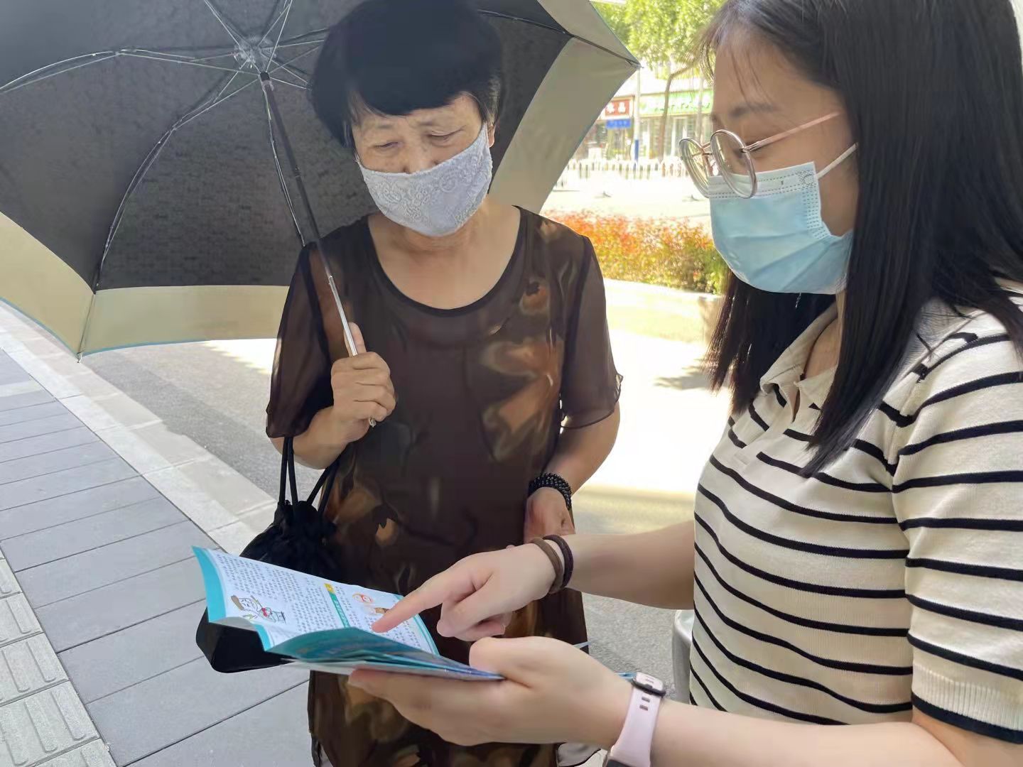 团队成员向老人讲述新型诈骗手段,并普及防诈骗的方法 7月9日,团队成员联合西大街社区卫生服务中心举办爱心义诊和健康科普活动,参与人数共计150余人,发放并有效回收调查问卷、疾病预防保健宣传单各100份。在活动现场,团队的每一位成员都积极传递着爱的接力棒,对老人们询问的各种症状进行耐心的解答,并给予合理的健康宣教。