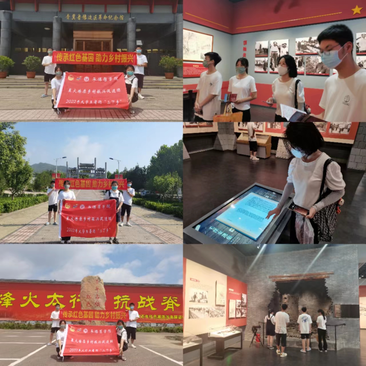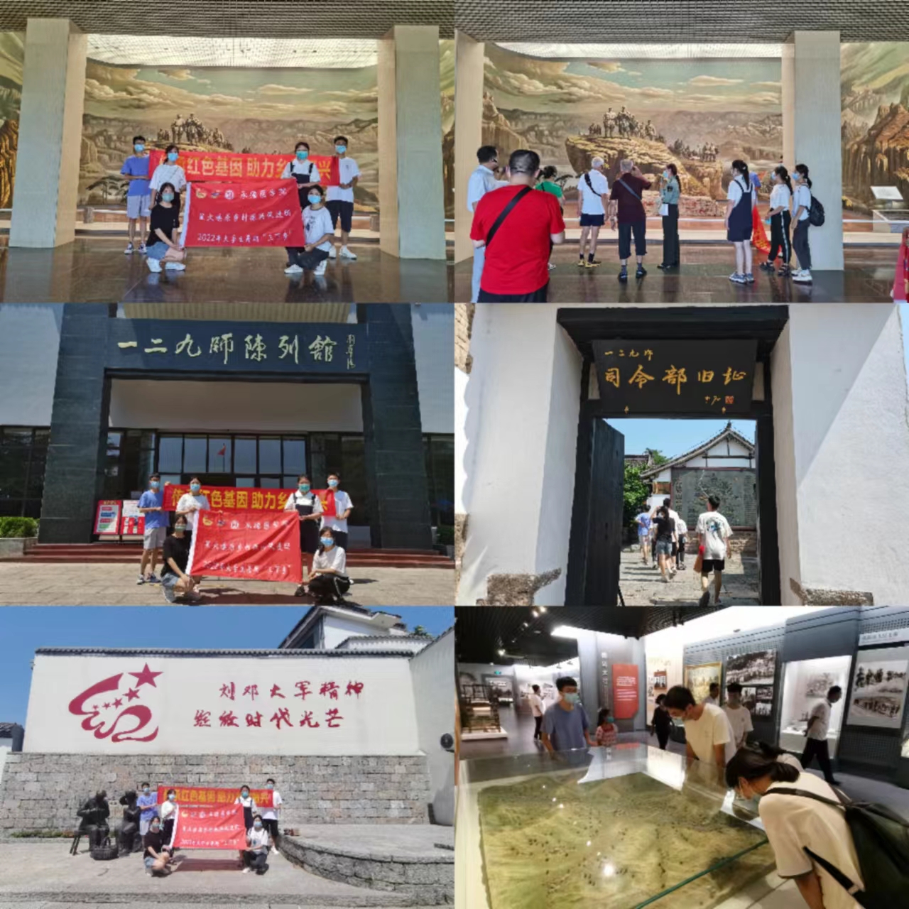 习近平总书记指出:“红色资源是我们党艰辛而辉煌奋斗历程的见证,是最宝贵的精神财富。”在乡村振兴战略背景下,依托邯郸地区丰富的红色旅游资源,为加强红色文化传承建设,以红色文旅助推乡村振兴,2022年7月20日至7月26日,承德医学院“寻访红色燕赵 助推乡村振兴”星火燎原乡村振兴促进团在河北省邯郸市涉县、武安市冶陶镇开展了暑期“三下乡”社会实践活动,通过走访政府机关与当地特色产业基地、采访当地村民等方式进行调研,为乡村振兴贡献力量。 追寻红色足迹 重走革命历程 经过前期的筹备与策划,7月21日、22日,团队成员分别前往涉县八路军一二九师纪念馆、冶陶镇晋冀鲁豫边区革命纪念馆参观学习。在司令部旧址、将军岭、一二九师陈列馆、抗战体验基地等地感悟革命精神,跟随解说员重温党史文化,进行党史学习。借助馆内历史与科技相结合的全息投影设备,成员沉浸式体验了刘邓大军挺进大别山的革命历程。团队成员表示今后将继续坚定爱国爱党信念,继承和弘扬老一辈无产阶级革命家英勇无畏、艰苦奋斗的革命传统,在红色文化中明理、增信、崇德,以实际行动积极投身到中国特色社会主义现代化建设中。 (点击每张图片即可查看原图)
