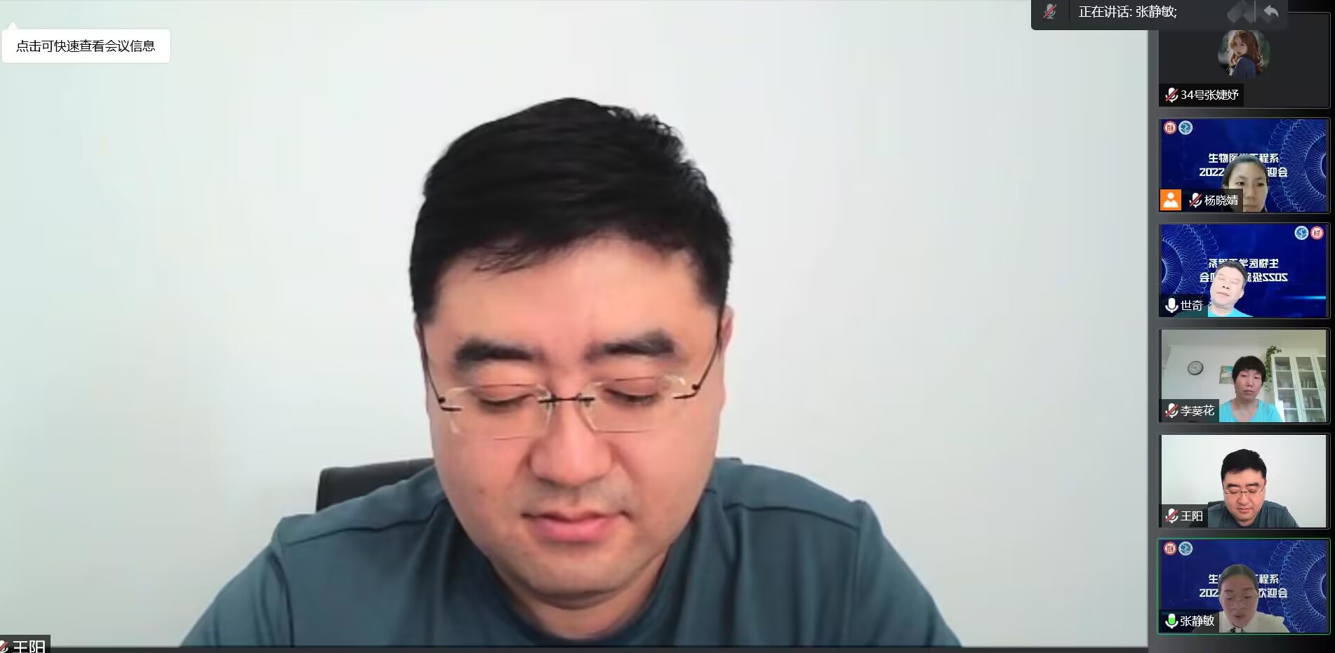 为进一步帮助生物医学工程系新生尽早融入大学生活,更好地适应大学环境,为新学期创造一个良好的学习开端,生物医学工程系于2022年9月1日上午9点通过腾讯会议形式,举办“2022级新生欢迎会”线上活动。生物医学工程系主任许士奇、党总支书记王阳、副主任李葵花、副书记张静敏和各教研室、研究室、实验中心主任及生物医学工程系全体2022级新生参加了此次活动。活动由生物医学工程系学生工作办公室主任杨晓婧主持。 (点击每张图片即可查看原图)