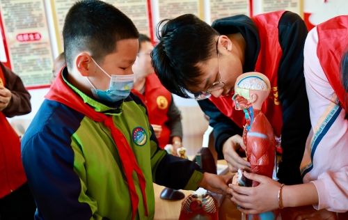 讲解身体构造、细胞结构等医学知识 志愿者李小彬说,为深入推进新时代文明实践,传承和弘扬志愿服务精神,助力未成年人健康成长,推动文明城市创建,我校将持续开展助学支教系列志愿服务活动,此次活动是一个良好的开端。在此次活动中,学校师生志愿者发挥专业特长,普及医学知识,旨在增强孩子们的健康意识,规范其卫生习惯和文明行为,为孩子们提供帮助,让他们能够学习更多的知识,争做新时代好少年,成为国之栋梁。承医志愿者们也要更加脚踏实地学习与实践,大力弘扬“奉献、友爱、互助、进步”的志愿服务精神,继续用实际行动推动文明城市创建。