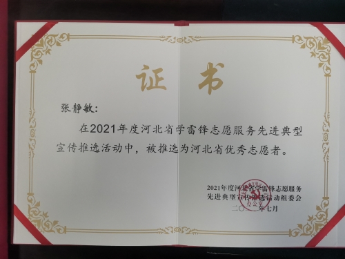 河北省优秀志愿者证书 2023年是全面贯彻党的二十大精神的开局之年,是毛泽东等老一辈革命家为雷锋同志题词60周年。近日,习近平总书记对深入开展学雷锋活动作出重要指示,强调深刻把握雷锋精神的时代内涵,让雷锋精神在新时代绽放更加璀璨的光芒。我校将认真落实习近平总书记关于深入开展学雷锋活动的重要指示,深入学习宣传贯彻党的二十大精神,围绕3月5日“学雷锋纪念日”集中开展志愿服务活动,弘扬“奉献、友爱、互助、进步”的志愿精神,鼓励和引导广大青年学子积极投身志愿服务,为中国式现代化承医场景贡献青春力量。