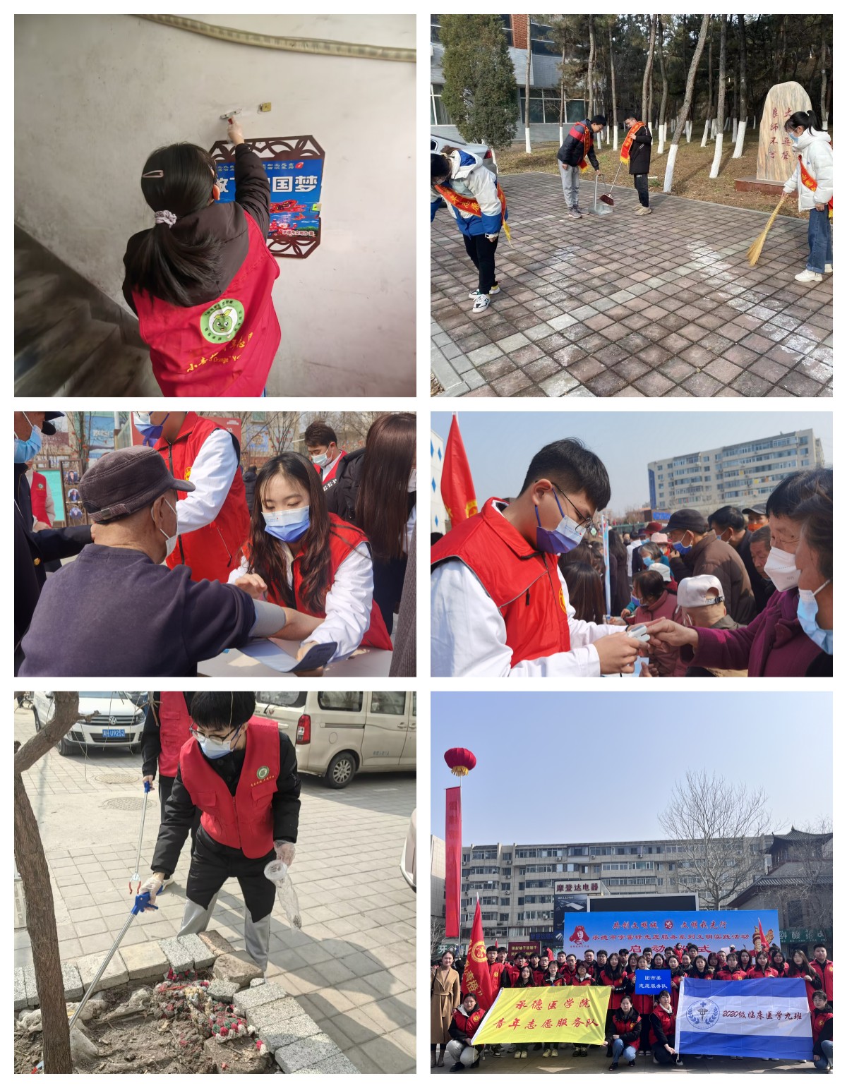 启动日活动现场 “三月雷锋行,温暖沐春风”志愿服务活动 为充分发扬“奉献、友爱、互助、进步”的志愿精神和雷锋精神,学校各院(系)积极响应号召,护理系开展垃圾分类丢弃、关爱空巢老人等志愿活动;中药学系196位同学携手石洞子沟街道和承德医学院宣传部开展了“弘扬雷锋精神 共创文明城市”大型志愿服务活动;基础医学院2020级第一学生团总支联合团市委,参加“共创文明城 文明我先行”系列活动启动仪式,并于仪式结束后开展“文明承德 青年先行”医疗健康志愿服务活动;各院系学生志愿者在玉萍岛小区开展“发扬雷锋精神 助力文明城市创建”志愿服务活动,改善小区环境卫生。志愿活动广受好评,各院(系)通过多种志愿服务形式为构建和谐社会,营造“人人可为、处处可为、时时可为”的志愿服务氛围做出贡献,用服务社会、助人为乐、爱岗敬业的雷锋精神筑成一道亮丽的风景线。