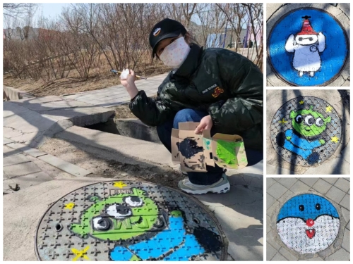 公益海报宣传 “井”上添花,斑斓生活 3月26日,志愿服务队联合2021级临床医学第四志愿服务队和环保社的成员,共同在校园里的井盖上进行涂鸦活动。志愿者们以井盖为画布,充分发挥聪明才智和创作才情,手持画笔与调色盘,一笔一画认真勾画轮廓、上色、修边。经过刷底色、铺背景、勾轮廓、填色和最后的勾边等一道道严格工序,“巴斯光年”“小熊维尼”等造型跃然于井盖之上。经过一番打扮,校园里的井盖穿上了五彩的花衣,色彩靓丽、风趣活泼,获得了师生们的驻足和赞赏。此次“井盖变形记”活动让旧井盖换新颜,也为校园环境添上了一道独特、绚丽的文化风景,它们不仅扮靓了校园环境,也充分展示奋发向上、敢于创新的大学生风采,以一种更直观更新颖的方式向同学们传递绿色环保、共建和谐校园的文明理念。