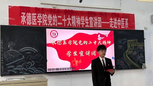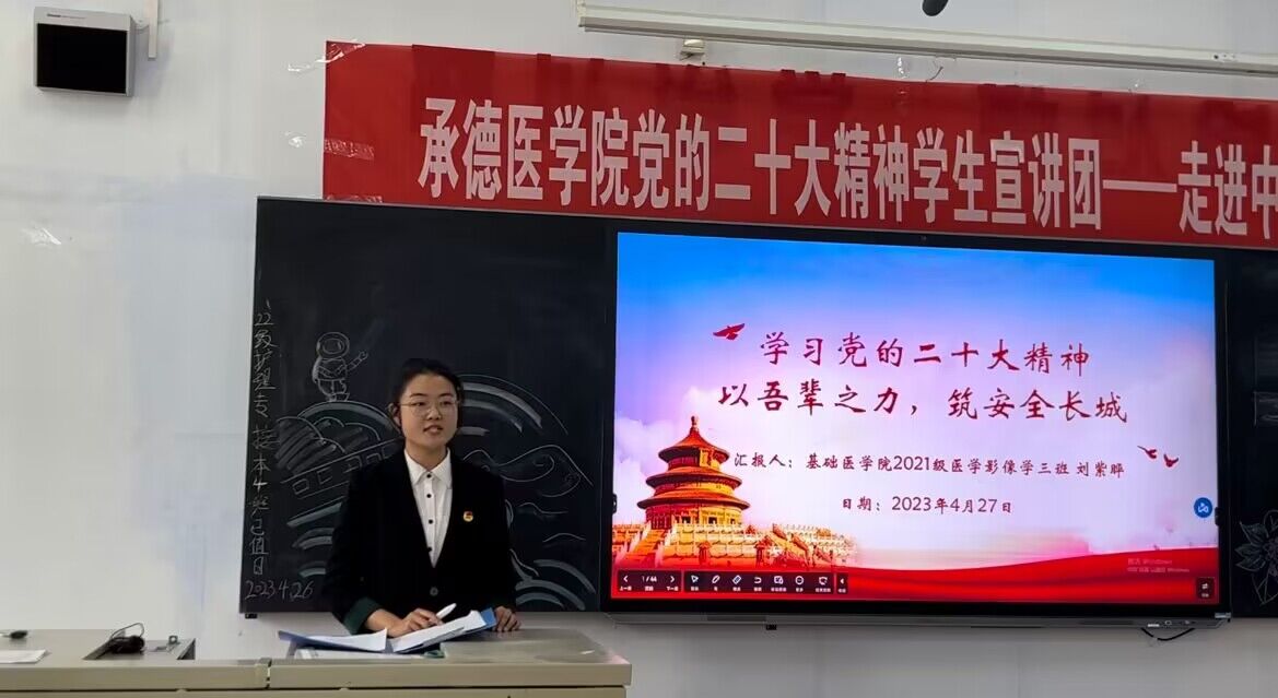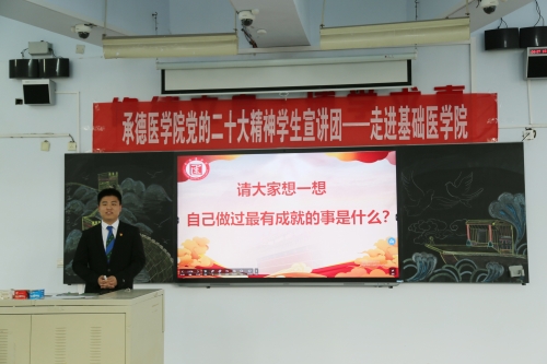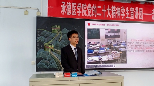 为深入学习宣传党的二十大精神和习近平总书记对青年工作的重要论述,鼓舞承医学子坚定信仰之心、担当之心和进取之心,我校于4月27日下午在教学楼举办了“学习党的二十大,凝聚新动力,奋进新征程”党的二十大精神学生宣讲活动。