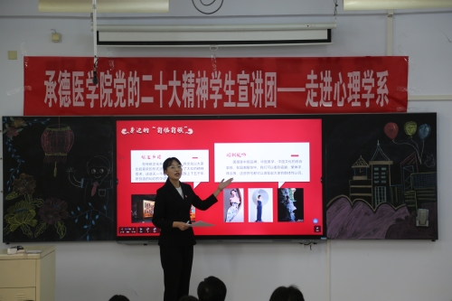 本次活动共有基础医学院、中医系、中药学系、生物医学工程系、心理学系五个分会场。宣讲团的同学们用有温度的话语、接地气的形式并结合自身经历逐一对党的二十大精神进行解读,帮助大家强信念、广见闻、知不足,努力让党的二十大精神在承医学子的心中落地生根。