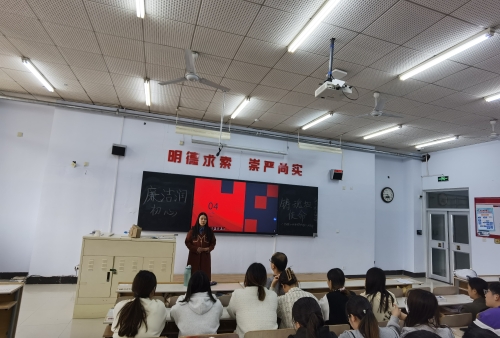 为深入学习贯彻党的二十大精神,落实党中央《关于加强新时代廉洁文化建设的意见》,推动新时代廉洁文化建设,护理系2021级第八团支部于2023年4月27日在教学楼301开展以“廉洁润初心 铸魂担使命”为主题的团日活动。我校纪检委、监察室综合科科长陆宏通、护理系2021级辅导员步佳慧出席本次活动。护理系2021级第八团支部全体成员及第七、第九、第十团支部成员代表参加。 活动开始,展团旗、唱团歌,第八团支部书记路玥进行活动内容介绍,班长王绍冲带领同学们演绎了即兴廉洁小故事。随后,陆宏通引用了名言名句和真实案例,为支部成员讲解廉洁廉政相关知识,鼓励同学们将廉洁意识内化于心,外化于行,做诚实守信的新时代青年。活动尾声,步佳慧进行总结发言,鼓励学生守住道德底线,遵守学术道德,规范言行举止,做合格大学生。 (点击每张图片即可查看原图)