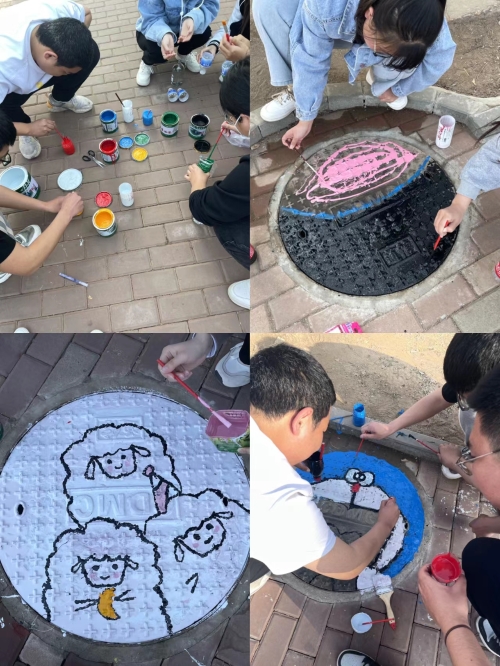 为进一步美化校园环境,丰富校园文化生活, 护理系2021级第九志愿服务队于2023年3月30日下午在校园内开展“井上添画、斑斓生活”校园井盖美化志愿服务活动。 本次活动旨在丰富学生课余生活,缓解学业压力、增加生活乐趣。活动中,志愿者们带着画笔、调色盘、颜料等工具,自主选择绘画题材和创意图案,对指定井盖进行涂鸦作画。从清洁、起形、上色,再到颜料风干、清洁打扫等共历时3个小时,活动圆满完成。此次活动共覆盖10个井盖,充满童趣的卡通人物和美丽的风景绘画为春季校园增添了别样风采。 (点击每张图片即可查看原图)