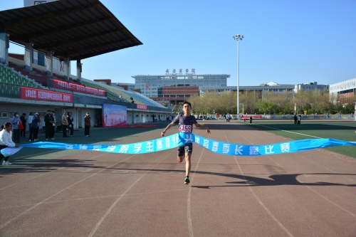 运动员代表宣誓 阳光体育春季长跑比赛在张凯的鸣枪发令下正式开始,选手们在赛道上奋力奔跑,挥洒汗水,释放激情,经过激烈的角逐,中医系2019级徐冠然、护理系2020级刘梦怡在比赛中分别获得男子组第一名、女子组第一名。