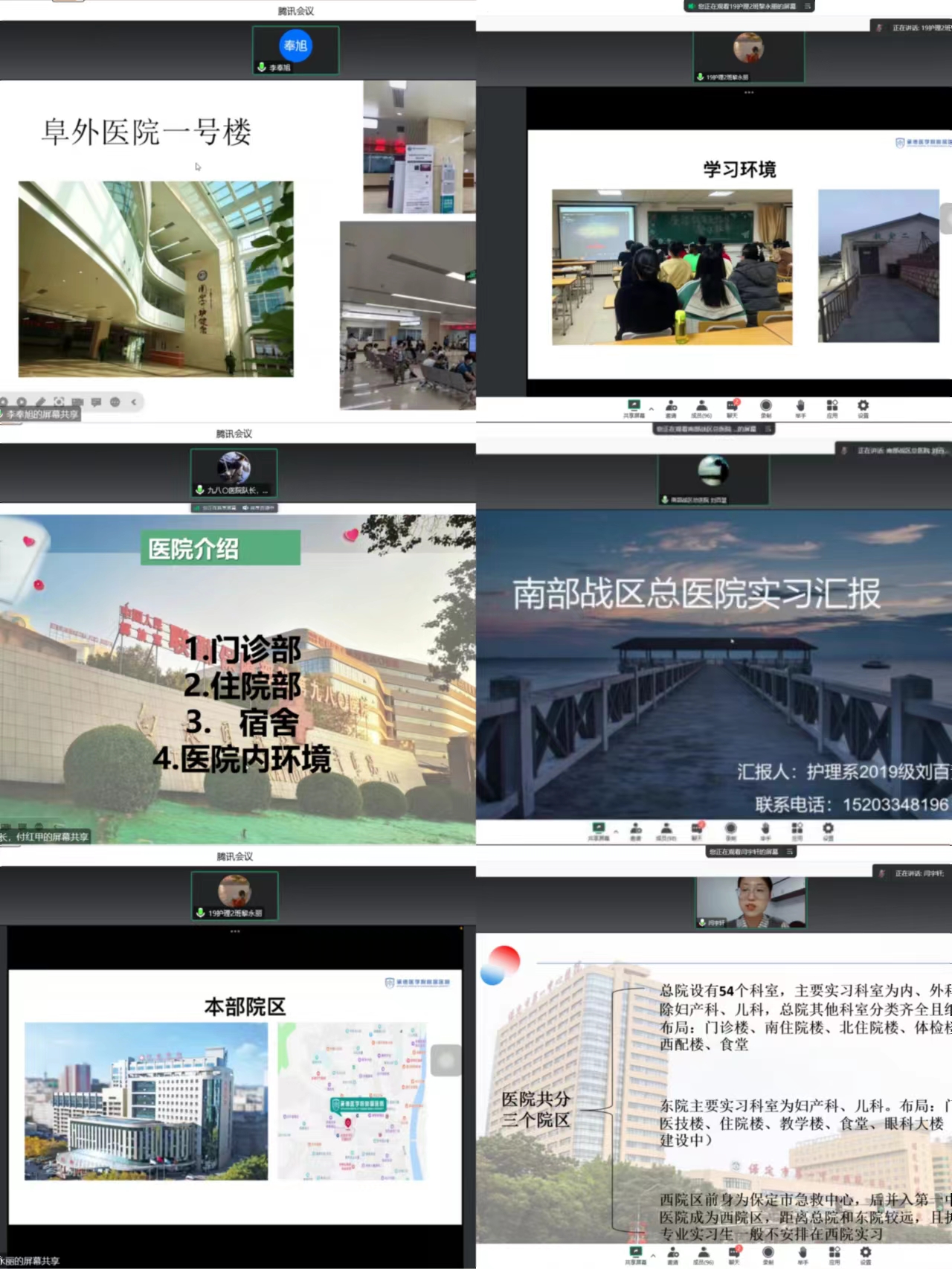 为全面推进学生素质教育发展,提高学生综合竞争力,同时进一步加强学校安全和管理工作,护理系2021级于2023年5月19日在腾讯会议开展健康安全教育大会,并联合护航工作室进行实习经验交流会。 (点击每张图片即可查看原图)