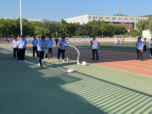 2023年9月26日下午,安全工作处组织职工及物业安保人员开展承德医学院应急演练暨安全消防技能运动会。活动旨在提升安保队伍业务素质,扎实做好校园安全消防工作。本次活动共计36名队员参加,学校党委副书记张学良到场观摩指导。 本次技能竞赛内容以绳梯攀爬、水龙带连接、穿脱消防服、50米接力跑为主要竞赛项目,着重考验队员器械使用、应急协调、团队协作等方面业务能力。参赛队伍分为治安队、消防队、交通队、校园巡逻队4个代表队,在比赛过程中各队齐心协力、争分夺秒,赛出成绩,也赛出乐趣。 (点击每张图片即可查看原图)
