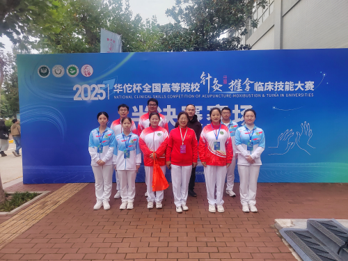 10月18日至19日,由中国针灸学会主办、陕西中医药大学承办的“2025全国高等院校针灸推拿临床技能大赛”在陕西咸阳成功举行。我校派出由中医系副主任高占华担任领队,教师高志旭、刘双燕为指导教师的师生代表队参赛,与来自全国49所高等院校的优秀选手同场竞技。 本次大赛以“传承创新中医药,培育卓越医匠人”为主题,设有腧穴定位、刺法、温针灸、推拿等多个竞赛项目,构建起“理论-技能-素养”三位一体的综合考核体系。赛事全程组织严谨、竞争激烈,充分展现了全国中医药院校师生的专业素养与临床能力。
