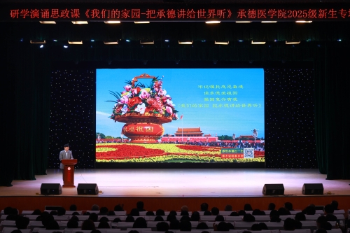 为践行习近平总书记视察承德重要讲话和重要指示精神,深化师生思想政治引领,引导青年学生深度探寻承德历史文脉、感知时代发展脉搏、厚植爱国爱乡情怀,10月17日,由承德市关心下一代工作委员会主办的“晚7点青年思政夜校”——牢记嘱托,感恩奋进,读承德爱祖国,强国复兴有我,《我们的家园·把承德讲给世界听》研学演诵思政课堂,正式走进我校。 活动创新采用“会堂主课堂现场演出+全校50个主题班会教室分课堂同步直播”模式,为广大师生打造了一堂兼具思想深度、文化厚度与艺术感染力的“大思政课”。 活动伊始,学校党委副书记张学良致辞。他首先对市关工委及文化志愿者表示热烈欢迎与衷心感谢,随后介绍了我校红色基因传承脉络与大思政育人体系的建设成效,强调此次研学演诵思政课对丰富育人体系、引导师生厚植家国情怀具有重要意义。