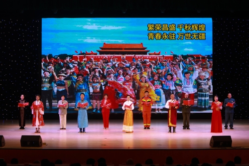 党委副书记张学良致辞 演出在庄严的国歌声中拉开序幕,现场播放了习近平总书记视察承德的央视影像,总书记对承德发展的殷切嘱托随画面传递,悄然浸润师生心田。整场演诵以“家园”为核心意象,通过“情景诵读 + 影像字幕”的形式,以标准普通话为表达载体、规范中文方块字为文化符号,巧妙融入音乐、演唱、影视、快闪、互动等表演元素,将14个精品节目有机串联。从承德深厚的历史文化积淀,到塞罕坝机械林场艰苦奋斗铸就的绿色奇迹,再到新时代承德人民踔厉奋发的发展图景,演出生动勾勒出跨越时空的承德“文化长卷”。音诗画《承德 我的家园》展现了承德的秀丽风光与人文底蕴;《梦想发光王浩泽》《民族英雄孙永勤》《擎天一举董存瑞》等主题节目,引导师生从革命先烈与当代榜样的精神中汲取养分;《最美塞罕坝》讲述了几代建设者的接续奋斗史,传递生态保护与责任担当的时代内涵;《不忘初心 信念永恒》《没有共产党就没有新中国》则进一步筑牢了师生的理想信仰。互动环节《歌唱祖国》,全场师生齐声高歌,将现场氛围推向高潮。活动最终在《我爱承德我爱家》的温情演绎中圆满落幕。