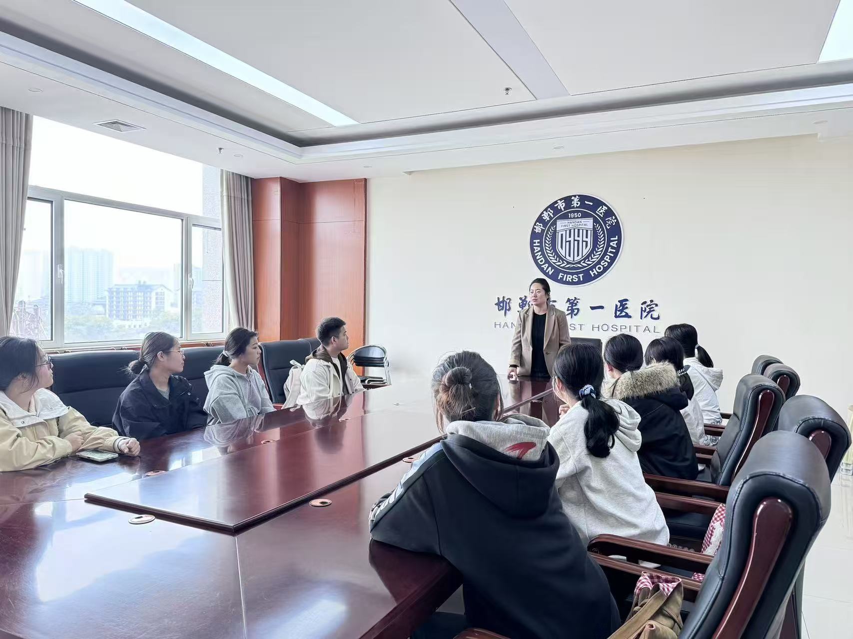 邯郸市第一医院活动现场 面向学生的推进会上,王阳强调了校院联动的重要性,希望同学们积极与学校和实习医院沟通,遇到问题及时反馈。朱炎杰则向同学们详细介绍了当前的就业形势和考研动态,鼓励报考研究生的同学坚定信心,合理规划复习进度;对于筹划目标单位的同学,分享了求职技巧和面试注意事项;针对需要择业指导的同学,提供了个性化的职业规划建议。杨捷、苏治中认真记录了同学们提出的问题和需求,表示会持续跟进,为大家提供必要的帮助。通过此次专项促就业推进会,同学们纷纷表示收获颇丰,对未来的就业和考研方向有了更清晰的认识,也感受到了学校和实习医院对他们的关心和支持。