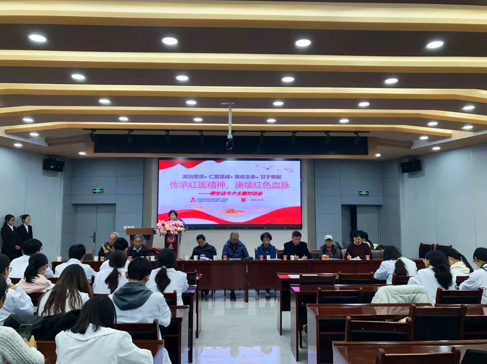 2025年10月24日至29日,为弘扬尊老爱老传统美德,传承红色基因与承医精神,离退休党委多个党支部于重阳节前夕和节日当天, 联合学生班级、团支部及社团开展主题鲜明的重阳节师生互动活动,以“交流 + 传承 + 联谊”的多元形式,搭建老少对话平台,凝聚师生情谊,筑牢立德树人根基。 红医精神传薪火 专业引领启新程 24 日下午,离退休第二党支部与中医系 2024级中医学第一团支部在“一站式”学生社区服务中心214 室联合开展“传承红医精神 庚续红色血脉 —— 师生话今夕”主题活动。