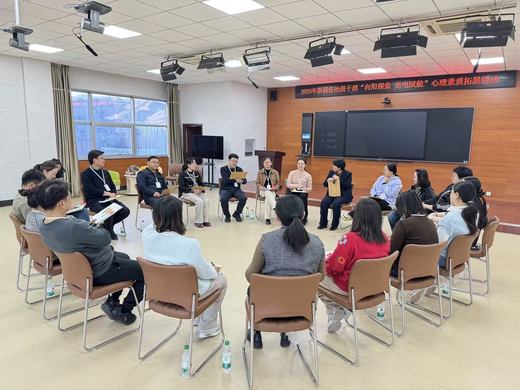 为切实关心关爱干部心理健康,为干部身心“充电”,为履职“赋能”,11月19-20日,我校在护理心理楼四楼活动室成功举办2025年新提任干部“向阳探索 充电赋能”心理素质拓展活动。本次活动由党委组织部牵头、心理学系承办,50余名新提任处、科级干部齐聚一堂,沉浸式参与活动。