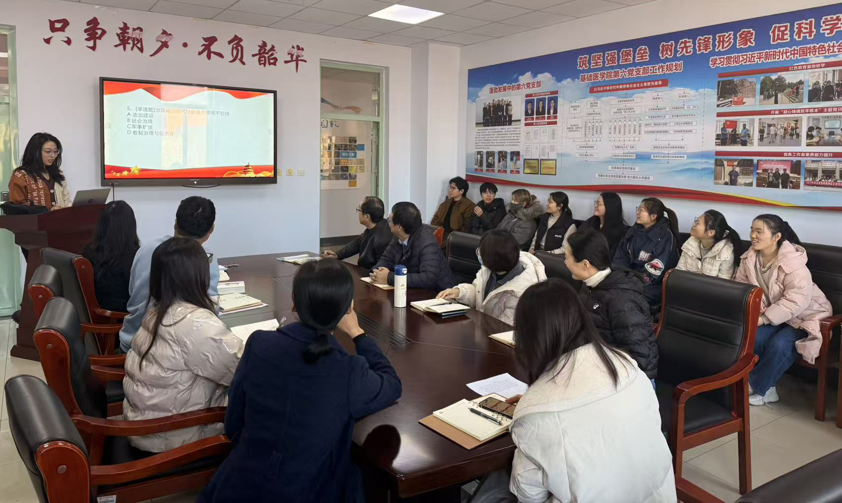 为推动党的二十届四中全会精神入脑入心,切实把思想和行动统一到党中央决策部署上来,11月21日基础医学院教工第六党支部与研究生学院学生第一党支部联合开展党的二十届四中全会精神应知应会知识竞赛。师生齐聚一堂,以赛促学、以学促行,在比拼交流中深化理论认知。 教工第六党支部书记许倩作动员讲话,强调党的二十届四中全会作为“十四五”收官与“十五五”谋划的关键节点召开的重要会议,为中国式现代化深入推进指明了方向。开展此次知识竞赛,既是检验师生理论学习成效的“试金石”,更是搭建师生共学共进桥梁的重要举措,以饱满热情投身竞赛,真正学懂弄通全会精神。 竞赛题目紧扣全会精神核心要义,涵盖中国式现代化、共同富裕、科技创新、高质量发展等关键内容,既有基础理论识记,也有实践结合阐释。在答题环节,师生党员沉着应答,展现出扎实的理论功底和理论联系实际的能力。 参赛学生表示,通过竞赛不仅厘清了全会精神的逻辑脉络,更从教师党员的作答中学会了如何将理论与专业学习结合。教工党员也谈到,与学生的互动交流为理论教学提供了鲜活素材,有助于更好地落实立德树人根本任务。 活动尾声,许倩总结指出,此次师生联合竞赛创新了理论学习形式,实现了教学相长。全体党员要以此次活动为契机,持续深化对全会精神的学习,将学习成果转化为教育教学与成长成才的实际行动,为推进教育高质量发展、服务中国式现代化建设贡献力量。