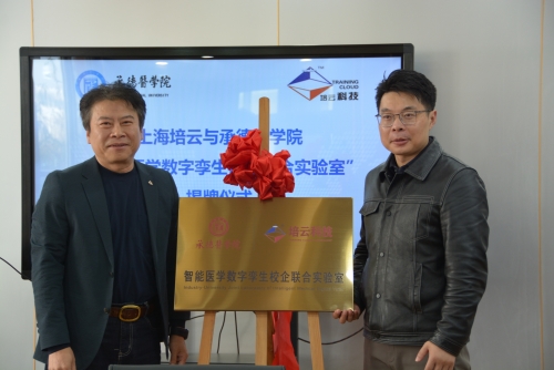 校企双方为实验室揭牌 仪式伊始,许士奇致欢迎辞。他指出,我校在医学影像处理、医疗设备原理与应用领域已构建扎实的教学科研基础,而智能医学数字孪生技术的落地转化亟需产业端资源支撑。联合实验室的成立将有效填补“理论教学与产业实践”的衔接断层,通过校企优势互补,推动学科向“技术研发-临床适配-人才输出”一体化方向发展,培育医工复合型人才,最终实现教学、科研、产业三方共赢的良好格局。 上海培云教育科技有限公司夏天随后介绍了企业在人体器官数字建模、医疗设备虚拟仿真及智能算法优化领域的核心成果。他表示,此次合作将采用项目共建模式,开放企业核心仿真平台赋能校方教学科研,并将临床实际需求转化为针对性研发课题,加速技术落地应用进程。 随后,双方围绕实践教学创新、师资队伍培训、科研项目联合攻关等核心合作领域展开深入交流,正式签署合作框架协议,并共同为“智能医学数字孪生校企联合实验室”揭牌。此次合作标志着双方将携手共建校外实践教学基地,为学生搭建优质实习与就业通道,同时联合开发契合市场需求的课程体系与教学内容,推动人才培养与产业需求精准对接。