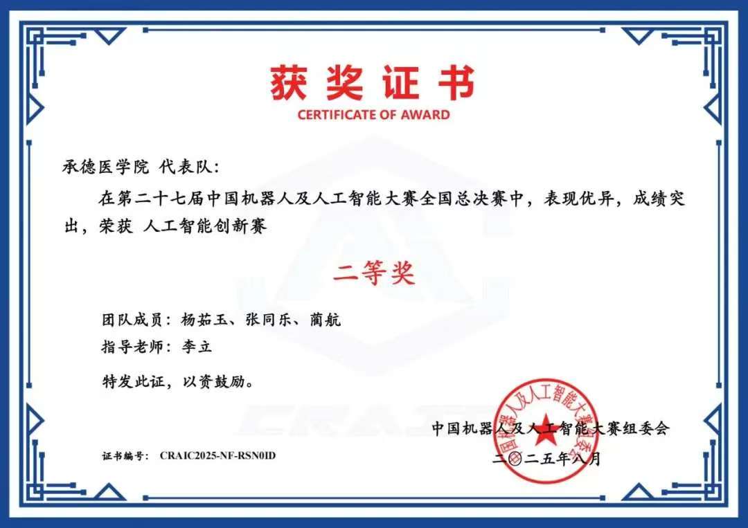 在医学发展的长河中,每一次科技的注入都如同点亮一盏明灯。当人工智能与机器人技术这片崭新的羽翼触及古老的医学领域,宏伟蓝图的天际不断延伸至理想的彼岸。将镜头聚焦于当下,一支来自生物医学工程专业的团队在第二十七届中国机器人及人工智能大赛中展露锋芒,荣获国家级二等奖,为我们生动演绎了这场“AI+医学”的精彩对话。 正是在这片肥沃的土壤上,一个充满挑战与机遇的场域中,学生们实现了关键的成长飞跃。他们不再仅仅沉浸于书本理论,而是勇敢地步入临床医学的真实场景,将所学的医学信息技术转化为解决实际问题的项目实践。更为可贵的是,通过竞赛的锤炼,许多同学摆脱了曾经的迷茫,获得了对自身能力的“确定性认知”,从而对未来的职业路径有了更为清晰的规划。