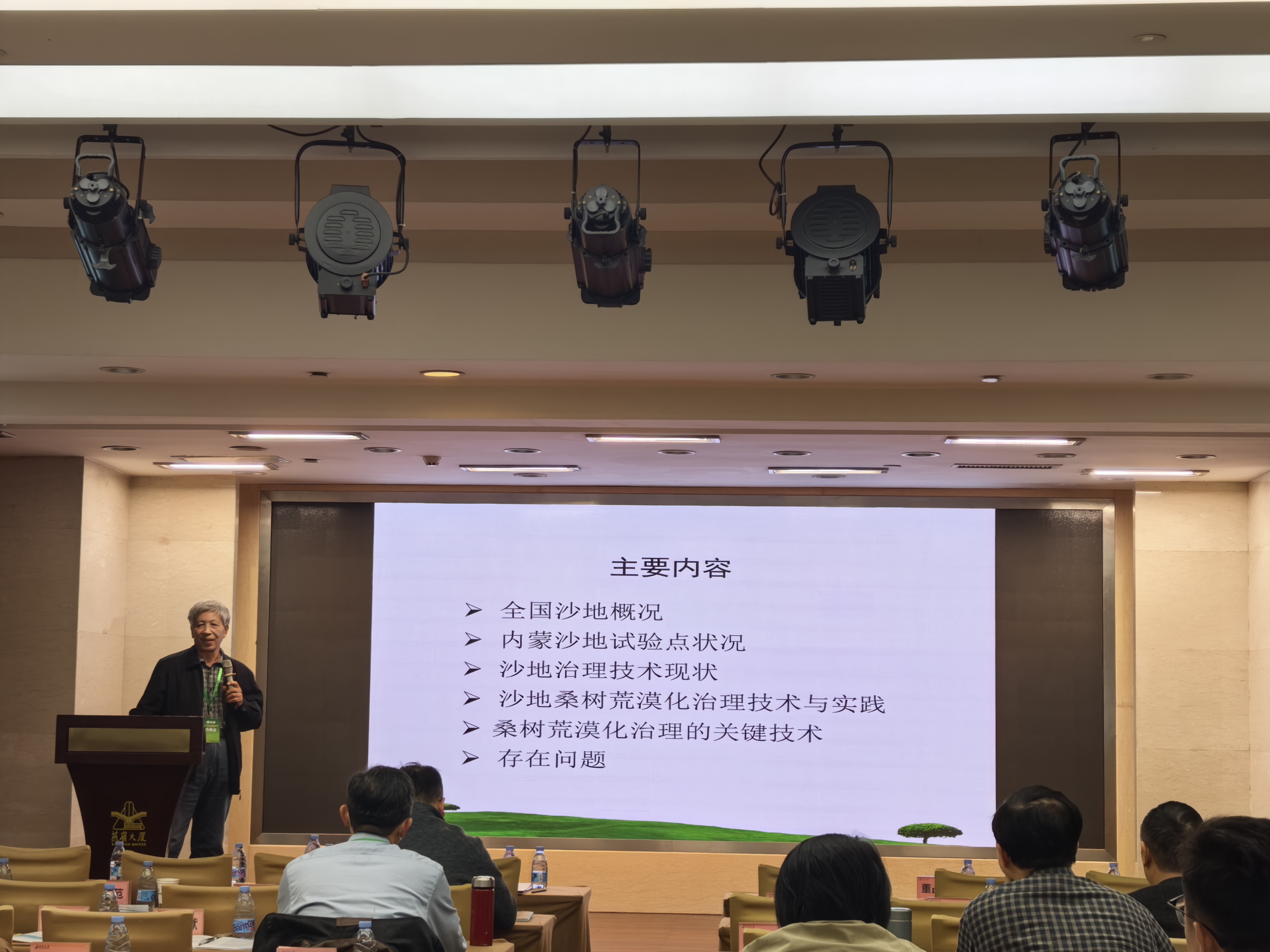 杨贵明研究员在年会作报告 本次会议为蚕业研究所科研工作搭建了高水平交流平台,既展示了沙地桑树治沙技术的实践价值,也为技术推广对接了行业资源;同时助力拓展蚕业生态功能研究视野,推动蚕桑学科向生态治理领域延伸,对提升学校科研影响力、服务荒漠化防治国家战略具有重要意义。