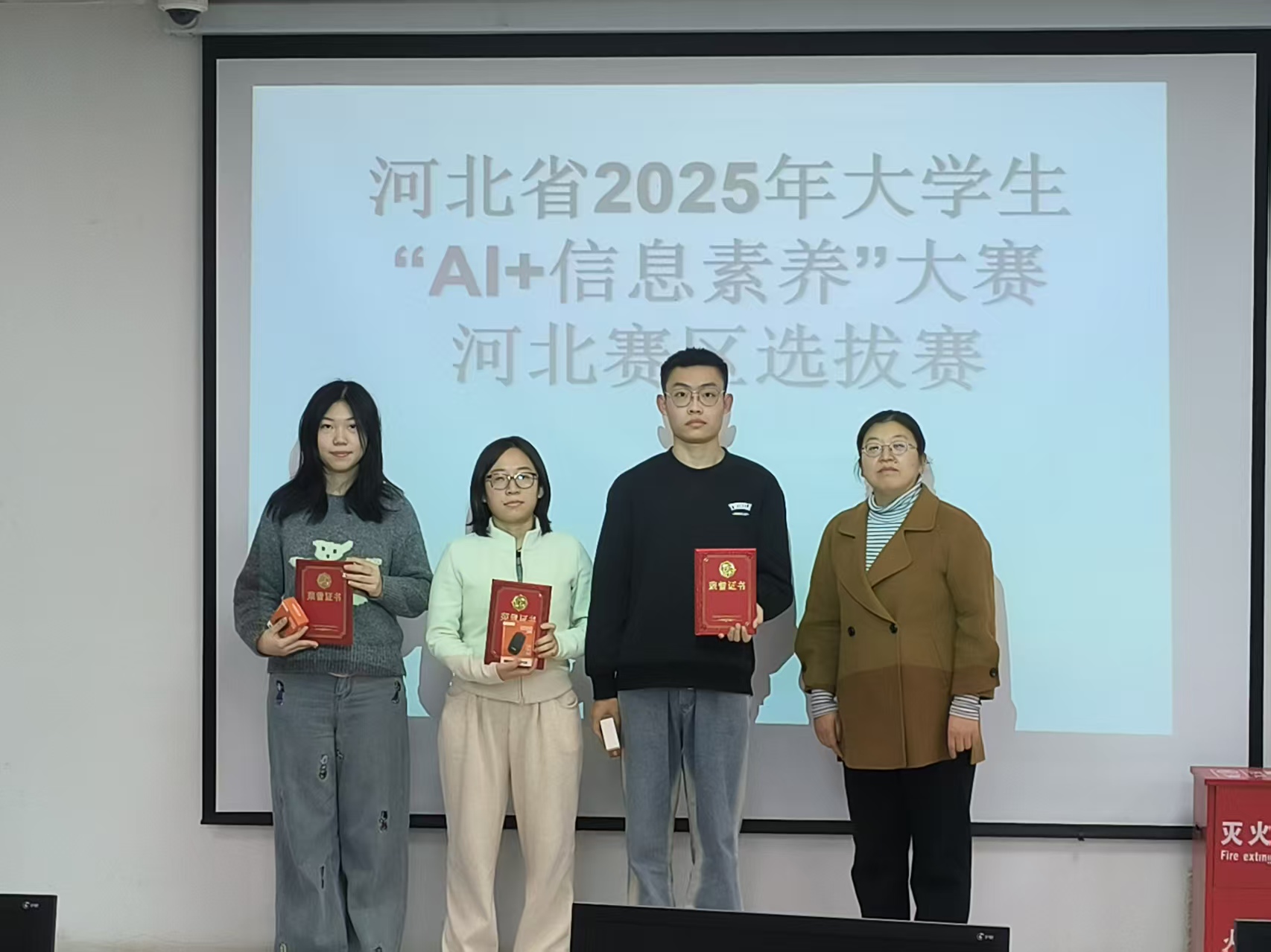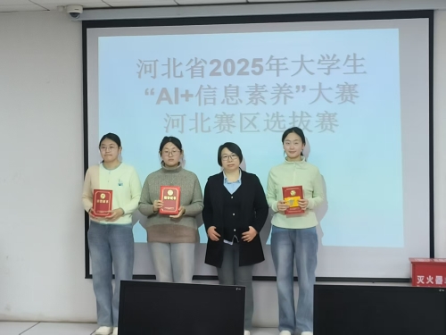 全国大学生“AI+信息素养”大赛是由教育部高等学校图书指导委员会指导、各省高校图工委主办的重要赛事,旨在全面检验和提升大学生的信息素养能力。本次河北赛区竞争激烈,全省共有33所高校的137支本科生团队和43支研究生队伍参赛。经过初步淘汰赛,最终70支本科生队伍和22支研究生队伍晋级决赛。 我校图书馆高度重视此项赛事,积极组织学生参赛并开展赛前系统培训。通过选拔,共派出4支本科生队伍(12名学生)参加省级淘汰赛。比赛中,我校学子凭借扎实的基础与出色的团队协作能力,最终有3支队伍在激烈的竞争中脱颖而出,荣获省赛二等奖1项、三等奖1项,优胜奖1项。