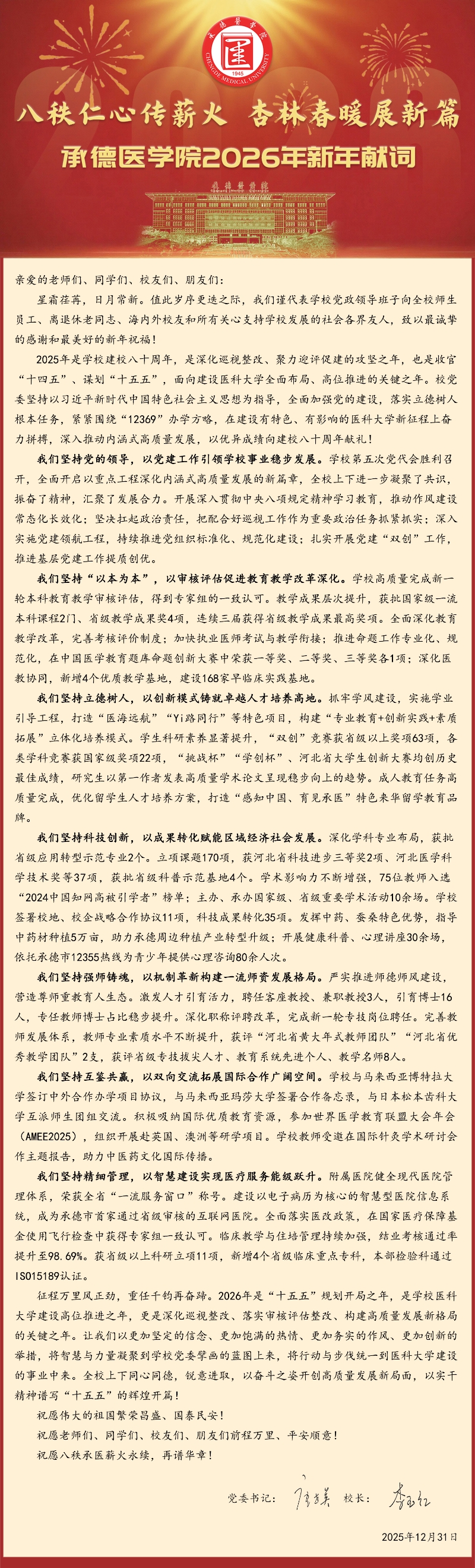 承德医学院2026年新年献词