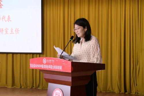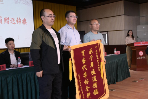活动现场 仪式上,高占华首先宣读了理论培训阶段考核合格学员名单及优秀授课教师表彰名单,对学员们踏实严谨的学习态度与教师们倾心传授的专业精神给予了高度肯定。 感恩于心,回馈于行。为表示对承德医学院及全体授课教师的由衷感谢,全体学员向中医系赠送了一面锦旗。这面锦旗不仅承载着学员们的深深谢意,更是对本次培训工作成效的高度认可。