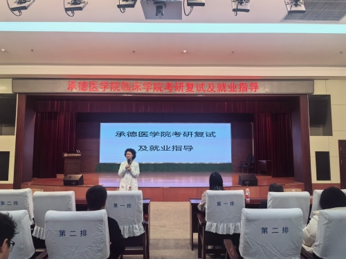 为深入落实高校毕业生就业与升学服务工作要求,切实帮助2026届临床医学类毕业生高效备战考研复试、明晰职业发展路径,3月3日至4日,我校在承德医学院附属医院和承德市中心医院连续举办两场考研复试与就业指导系列专题活动。学校党委常委、副校长王瑞婷,学生工作处处长张文军,临床学院党委书记张宇丽、党委副书记于海龙出席活动,为2021级学子升学就业提供全流程、精准化指导,助力毕业生稳升学、就好业。 会上,王瑞婷就心态调适、调剂策略等关键环节给出实操建议。针对临床医学等专业“四证合一”培养与规培衔接要求,强调夯实临床思维与实践能力,提升复试竞争力。她强调,笔试要通过官网、师兄师姐、专业老师多方搜集信息;中文自我介绍突出成绩、证书与胜任力,英文自我介绍简洁易懂、语速平稳。志愿与调剂需综合分数、就业、家庭等因素理性选择,未获待录取前积极填报调剂机会,接到复试通知务必参加。